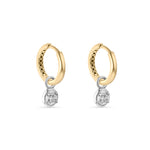 These exquisite earrings showcase timeless elegance with a contemporary edge. Crafted in 18ct yellow gold, each huggie-style hoop delicately suspends a white gold drop, 0.34ct of round brilliant cut diamonds. Each diamond is expertly cut to ensure maximum brilliance and fire.